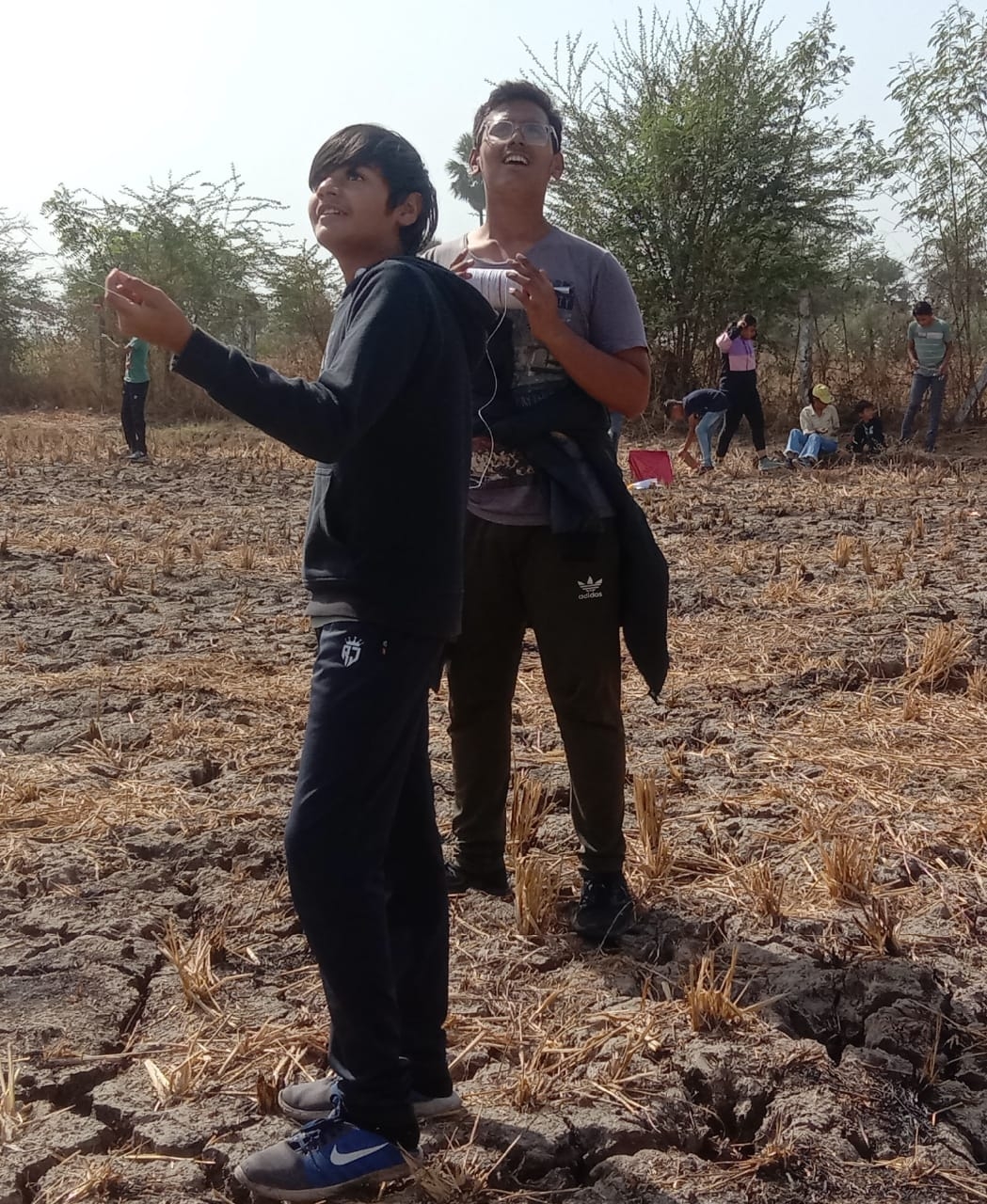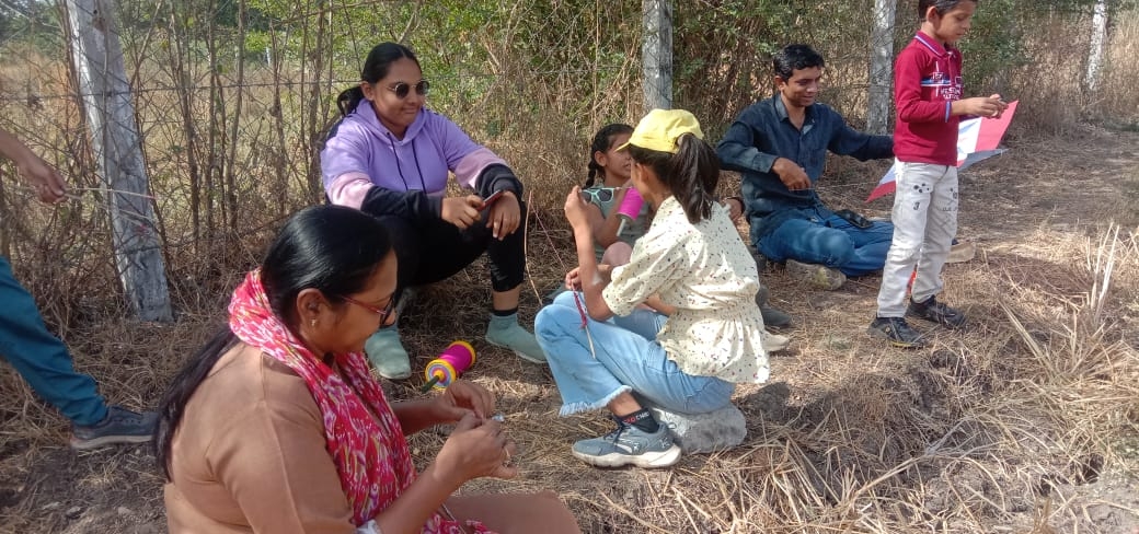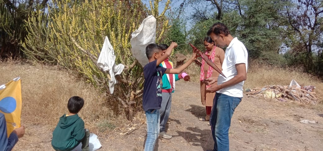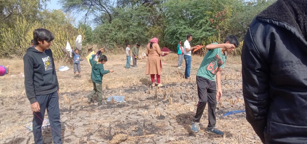 Children learn to make kites by themselves in school. Children bring kites and spinners and fly kites to the school grounds.